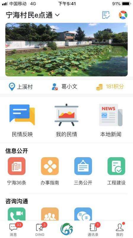 怎样重新凝聚起村庄的发展合力?去年4月,一场依靠互联网进行的乡村治理创新实验在宁海启动,宁海依托政务钉钉等网络平台打造了一个虚拟的“网上村庄”,村民变网友,全县22万户农民住进同“一张网”。在平台上,每个村庄都拥有独立的网络空间,村民可第一时间接收信息、享受公共服务、反映问题、参与乡村治理,还能与左邻右舍互动,找回乡愁纽带。
