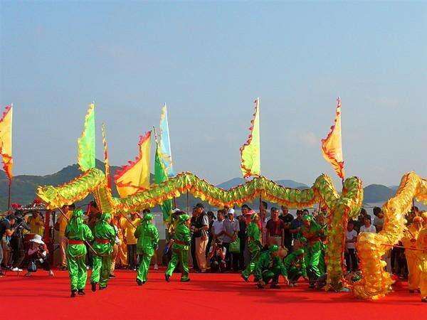 接着,祭乐响起,舞者向大海献祭舞。青山碧海间,象山渔民以自己的方式庆祝一年一度属于自己的盛会。鱼灯队、龙灯队、马灯队穿梭往来,腾挪跳跃,人灯共舞,四海共欢……