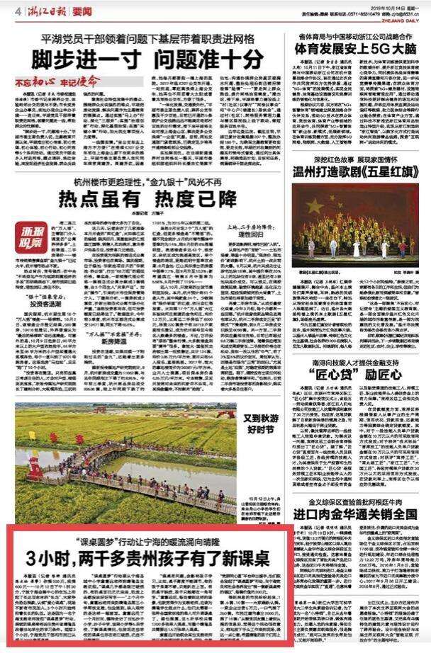 童富远开始联合其他支教老师将诉求传递回家乡宁海,很快,宁海“党群同心圆”平台伸出援手,他们联合发起了“课桌圆梦”行动,向宁海党员和社会各界发出“捐一套新课桌椅的倡议”,每套价值约200元。