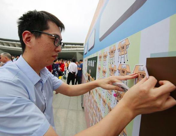 浙江在线-宁波频道10月14日讯(浙江在线记者 陈醉 通讯员 陈云松 蒋攀)你捐200元,我捐400元……10月12日下午1时30分,宁波宁海会展中心的空地上排起了长达百余米的“长龙”,大家争先恐后捐款,认领“爱心课桌”,现场不断有市民加入,3个小时内始终排着长长的队伍。这是因为一名宁海支教老师发起“课桌圆梦”行动,捐领的课桌椅将运往贵州省晴隆县改善当地学生的学习条件。短短3个小时,宁海党员干部和市民已认捐了2200套课桌椅。