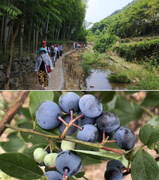 离村子不远处便到我们此行的第一站——蓝莓园。此时,正是蓝莓进入盛产的阶段,每株半人高的树上都结满了裹着白霜的蓝莓果,这诱人的颜色不禁使人食指大动。