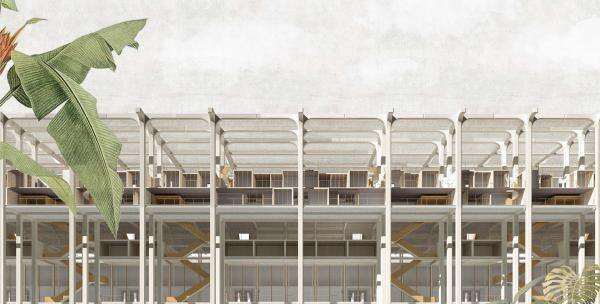 为什么会有这个设计想法?赵海峰说,每届世界杯结束后,大量的场馆会面临着浪费和废弃等问题,基于实现可持续发展的理念,他决定使用单元住宅模块将体育馆改造成一个社区。其中足球场的部分能够被当作一个农场,而看台部分可以放置各种规模的居住模块,项目拟采用相同的建筑模量(结构、框架)来适应不同的建筑形式。这就意味着,世界杯结束后,场馆的基本模块被拆除,预留空间可以提供居住模块。这样,“把体育馆本身的气氛带入到社区气氛中,实现和谐统一,体育馆自适应项目最直接的社会意义就是资源的可重复利用。”