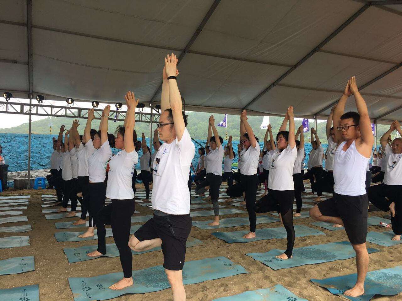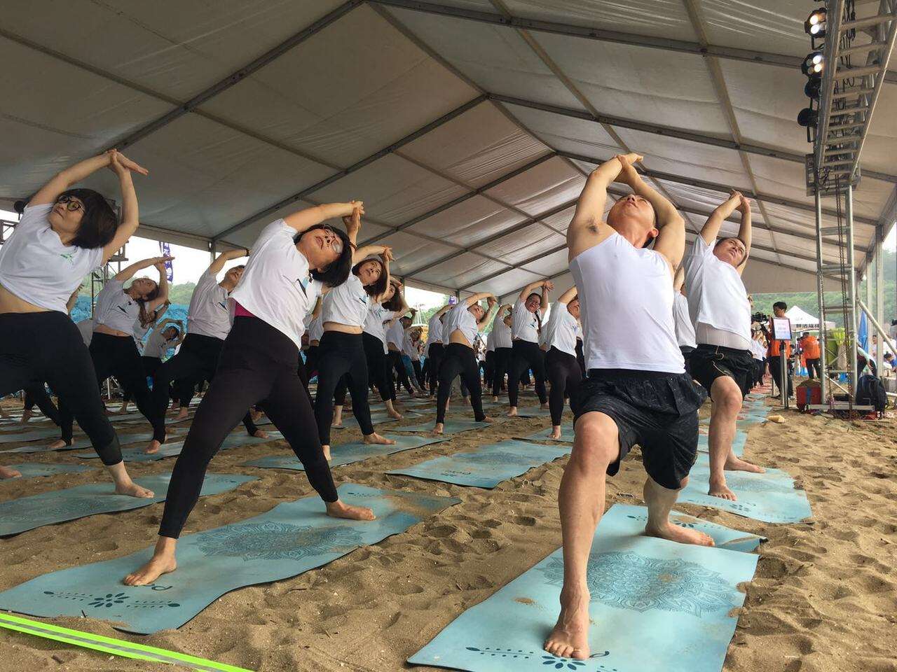 开场的沙滩瑜伽展示由瑜伽老师带领,让上百名瑜伽爱好者在吐纳收放之间感受蓝天、沙滩、海浪的气息,收获从身体到心灵的满足,尽情体悟瑜珈“天人合一”的精神。