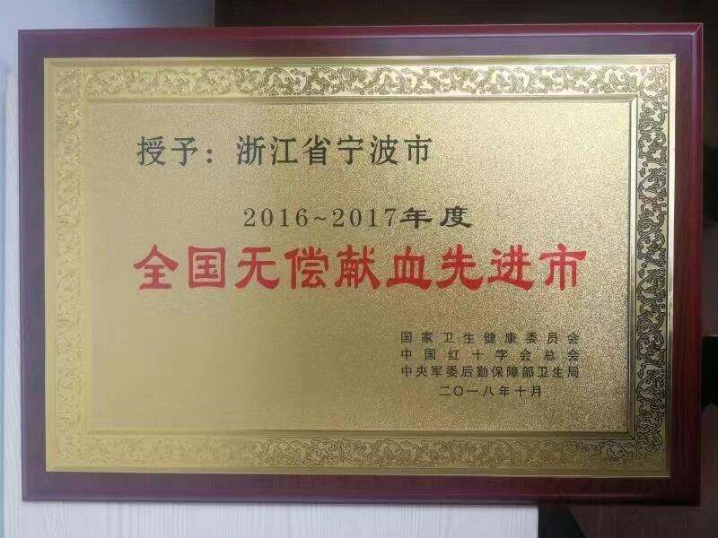 浙江在线-宁波频道1月2日讯(浙江在线记者 王波 通讯员 周颖)今天记者从宁波市血站获悉,国家卫生健康委员会日前公布了《关于表彰2016-2017年度无偿献血奉献奖金奖等奖项获奖者的决定》,宁波市荣获2016-2017年度全国无偿献血先进市荣誉称号,这是宁波第8次获得此项殊荣。