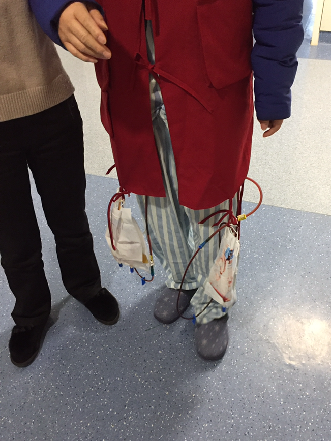 “一些做了胃癌根治、肠癌根治或脾切除手术的患者,术后身上插的各种导管、引流管特别多,下床活动非常不方便。”这款背心的设计者、鄞州二院胃肠外科病区龚芳儿护士长说,为了让患者术后尽快恢复,现在科室大力推行快速康复理念,倡导患者早期下床活动。但术后留置的腹腔引流管、导尿管、胃肠减压器等各种导管、引流装置,总会给患者的行动带来诸多不便。除了导管不好固定,引流袋位置太高也容易逆行感染。所以以往常常是患者在前面走,家属还得跟在后面帮忙提着各种引流袋,既不方便也不安全。