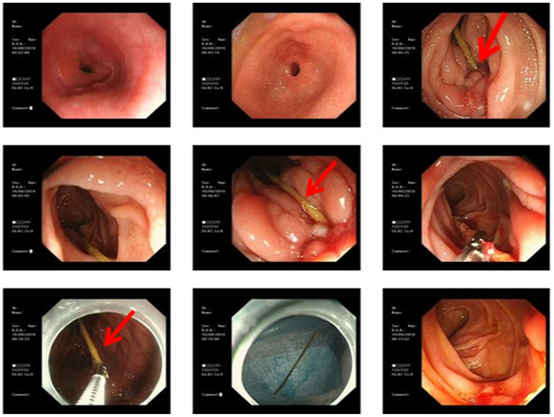 为什么一开始当地医院胃镜检查时没有发现牙签,江军表示,十二指肠是人体介于胃与空肠之间的一个器官,紧贴腹后壁,是小肠中长度最短、管径最大、位置最深且最为固定的小肠段。十二指肠的形状呈“C”形,包绕胰头,可分球部、降部、水平部和升部四部。“降部弯曲度比较大,胃镜伸进去很容易滑到球部以上位置,以至于观察不到降部的病变。夏先生之前的检查可能出现这样的情况,因此一直查不出病因。”江军主任推测。