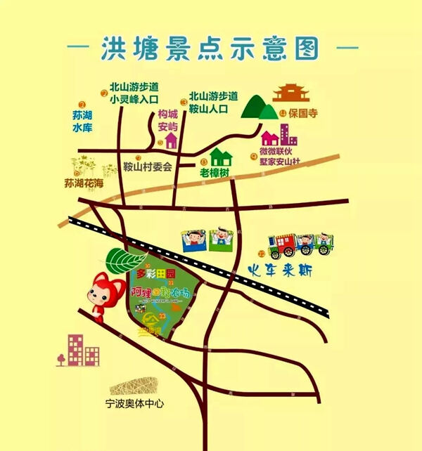 除了阿狸田野乐园、火车来斯,在洪塘街道,其实,还有很多不错的景点,比如保国寺、荪湖花海、北山游步道、洪塘湾、多彩田园。