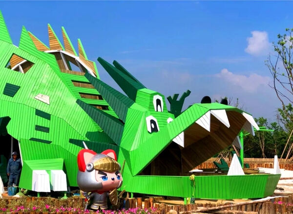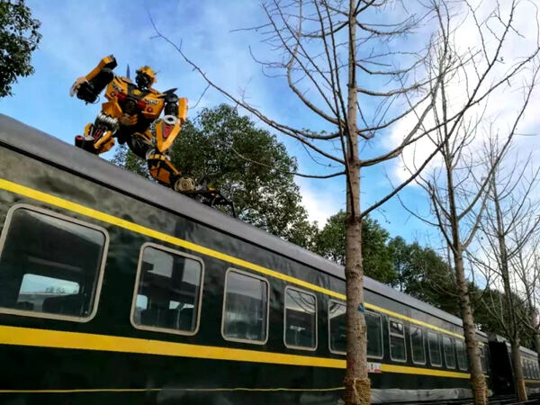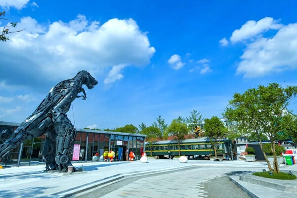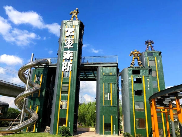 洪塘湾:铁轨交错,树木林立,在火车头、变形金刚、汽车零件等元素的点缀下,整个公园金属质感十足,到了夜晚,华彩的灯光也是一大亮点。