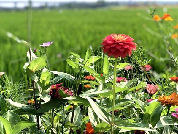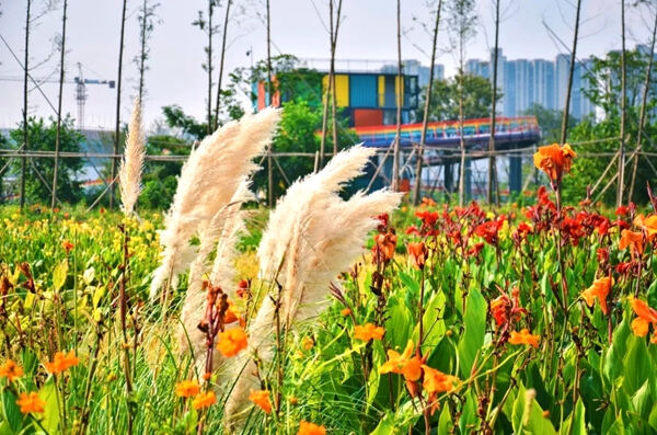 荪湖花海:在荪湖路东侧花海,百余亩硫华菊、百日草已盛大绽放。