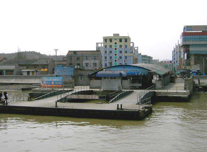 本世纪初的镇海渡码头,当时沿江还有不少平房。 镇海轮渡公司供图