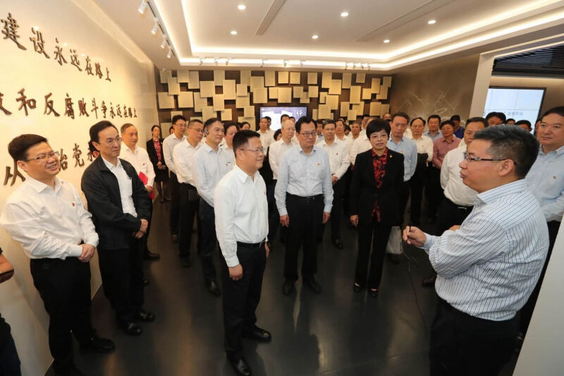 在讲解员的引导下,郑栅洁等进入“不忘初心、牢记使命”展区,重温近百年来中国共产党作风建设和反腐倡廉波澜壮阔的历史。当视频中出现了党章守护人张人亚时,不少人不约而同地说,“这是我们宁波人!”心中一股自豪感油然而生。