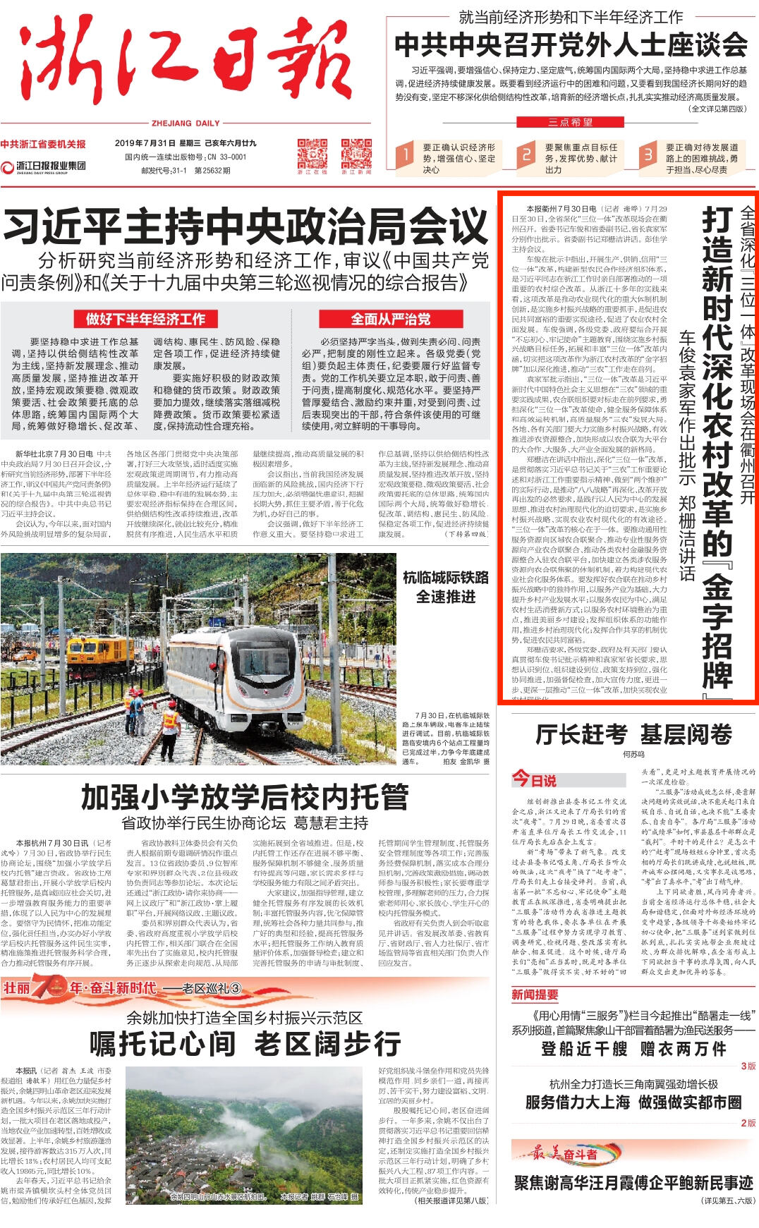 浙江在线-宁波频道7月31日讯(浙江在线记者 谢晔)7月29日至30日,全省深化“三位一体”改革现场会在衢州召开。省委书记车俊和省委副书记、省长袁家军分别作出批示。省委副书记郑栅洁讲话。彭佳学主持会议。