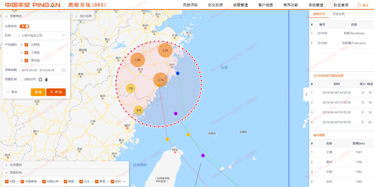 为最大限度地减少客户损失,平安产险宁波分公司于8月5日通过DRS鹰眼系统确定可能受影响企业客户1235个,并通过电话、微信、邮件、短信等方式累计向客户发送超52万条次预警提示,投放20万元应急物资到救灾一线;在全市多个危险道口、涵洞、易积水路段安排人员驻点值守,妥善快速处理各类案件。同时组建现场防控小组现场排查,针对企财险、工程险可能重度影响的客户提供风险排查及抗台支援。截至8月9日16:00(台风登录前),完成169个高风险标的现场隐患排查,并配套防灾物资,协助客户提升抗灾能力。