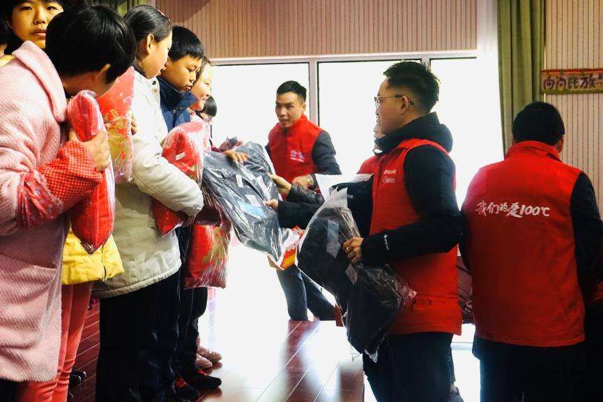 承载着满满的爱心,爱心车队整齐出发,经过一个多小时的长途跋涉,车队终于到达象山培智学校,平安志愿者和爱心车主们把为孩子们准备的行李箱、焖烧壶、平安抱枕被等新年礼物和爱心物资一一分发到每位学生的手上。