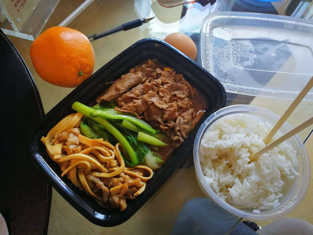 洗漱好以后,王海霞便去电梯口拿回了自己的午饭。“菜都不错,有鱼有肉有菜,还有水果。但是因为时间隔了太久,基本上都不热了。”王海霞说:“我们浙江医疗队的后勤是做的最好的,别人都羡慕我们。”