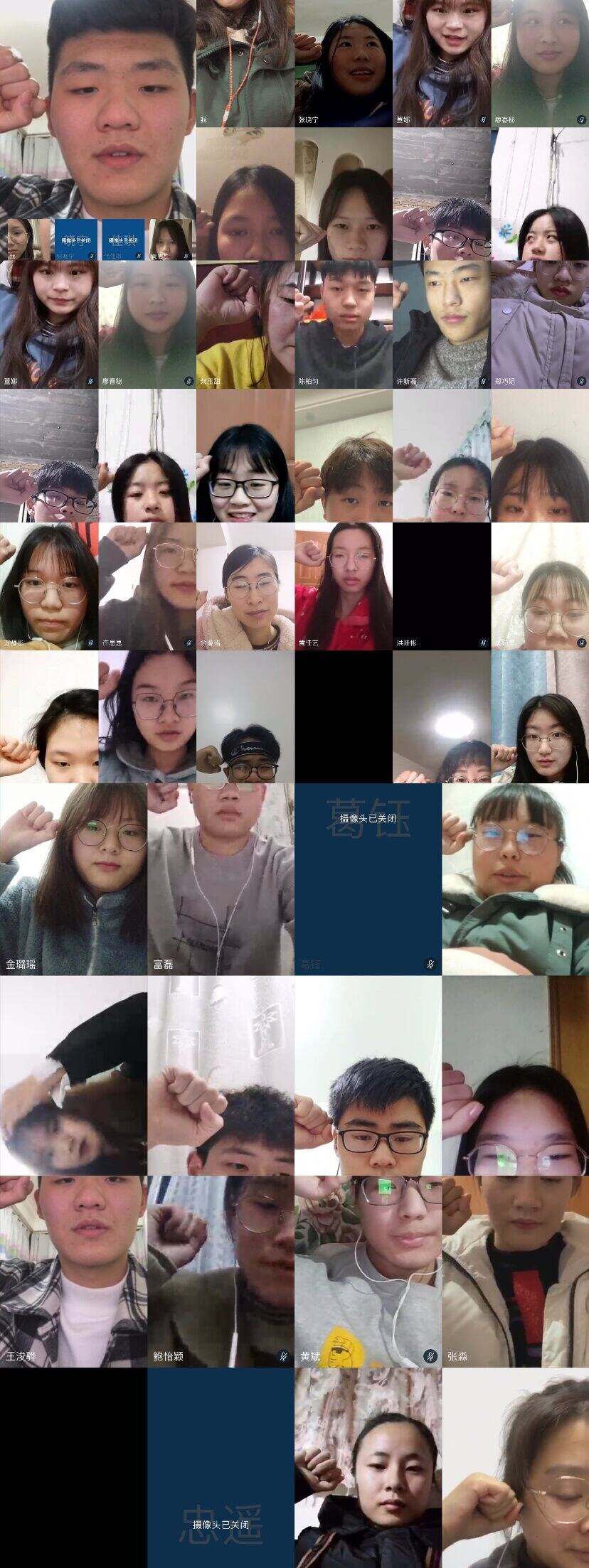 “同学们,现在疫情肆虐,整个国家都在防控疫情,朝同一个方向努力。在这种特殊情况下召开网络班会,班长精心设计,同学们也积极配合,达到了预期效果。”余老师最后说,她希望大家如今天在班会上承诺的那样,“自觉遵守居家隔离的规定,不聚餐,不外出,勤洗手,戴口罩,保护好自己,保护好家人,保护好国家,我们每一名大学生都应该在这场特殊的战争中做贡献。”