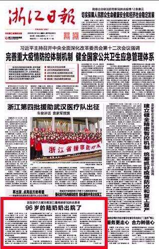 “治疗高龄患者的过程险象环生,但在团队的精心治疗下,我们跑赢了病毒。”浙大一院党委书记梁廷波表示,这个成功经验不仅可以作为治愈高龄患者的“浙江方案”,也更加坚定了大家最终打赢这场疫情防控阻击战的信心和决心。