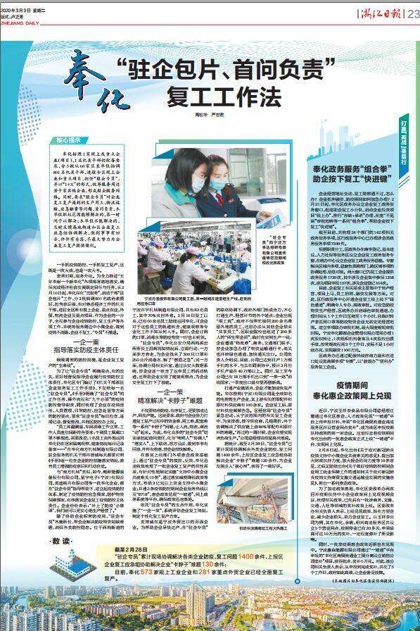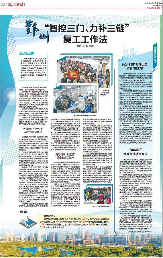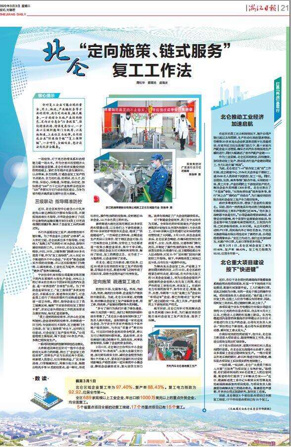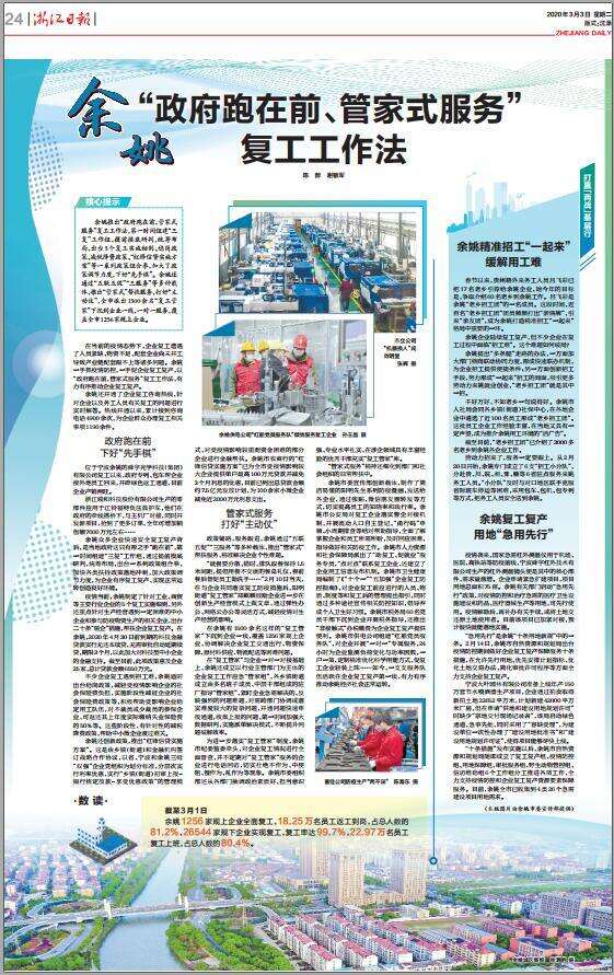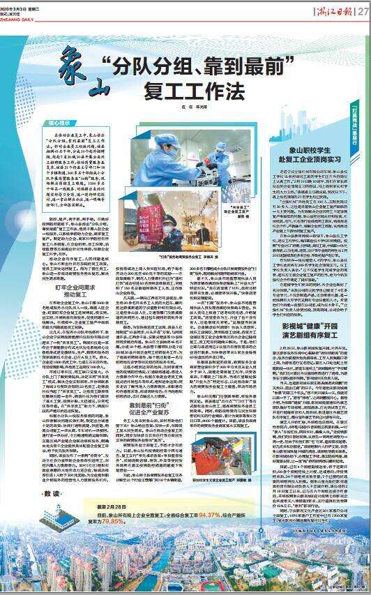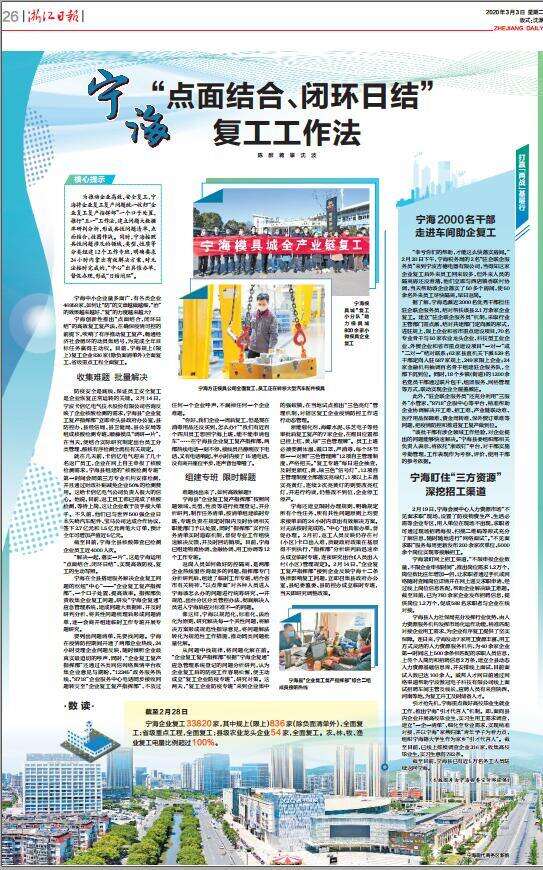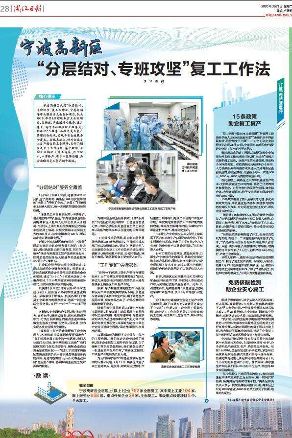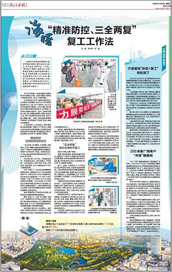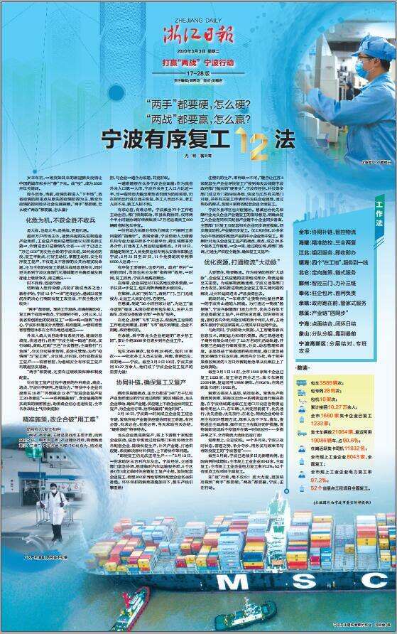 3月3日,浙江日报推出特刊《打赢“两战”宁波行动:有序复工12法》,以12个整版的篇幅聚焦宁波“两战”做法和成效。