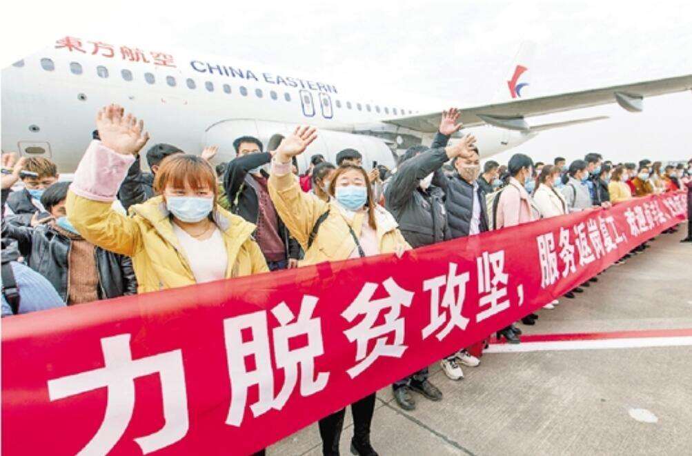 在海曙,企业深挖对口扶贫地区劳务资源,一手扶贫一手复工,包机将黔西南老乡接回来。