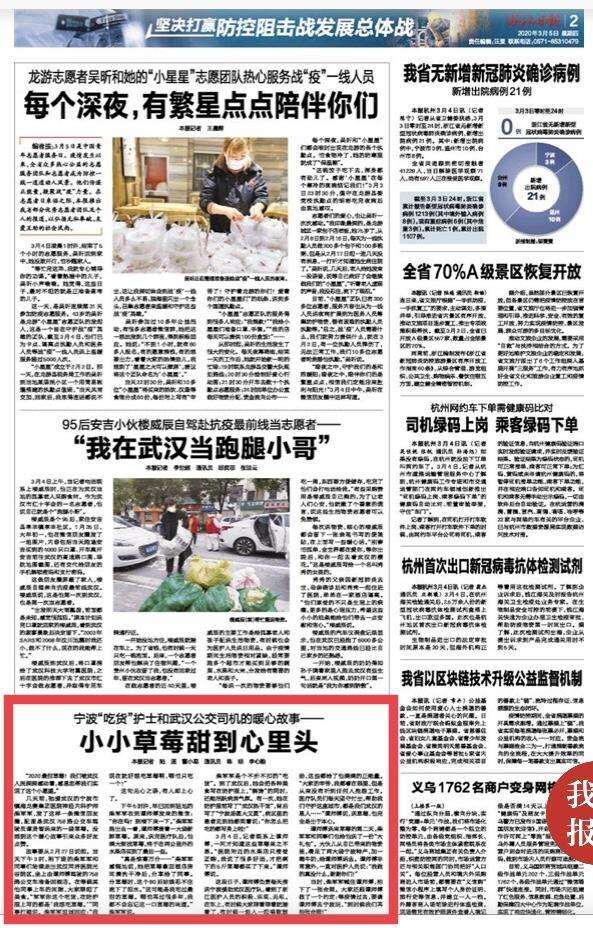 浙江在线-宁波频道3月5日讯(浙江在线记者 陆遥 董小易 通讯员 陈琼 李心韵)“2020最甜草莓!我们被武汉人民深深感动着,感恩您帮我们实现了这个小愿望。”