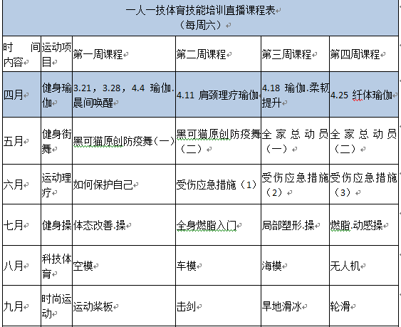 接下来,“一人一技”体育人继续推出战“疫”课程,每月一个体育主题,每周一节体育课程,同时将为赴湖北医务人员和宁波防疫一线医务人员送上健身培训指导和心理辅导讲座。