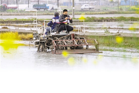 以往春耕前,市区两级农技部门都会组织种粮大户集中培训。“今年因为疫情集中培训取消了,农技专家就上门指导我们备耕。”汪琰斌说,“他们定时来指导。我有问题一个电话,他们随时上门,备春耕期间就来了十几次吧。”