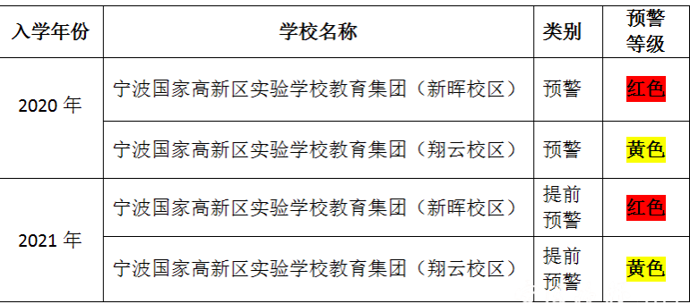 宁波鄞州区发布中小学招生预警:11所红色!6所黄色