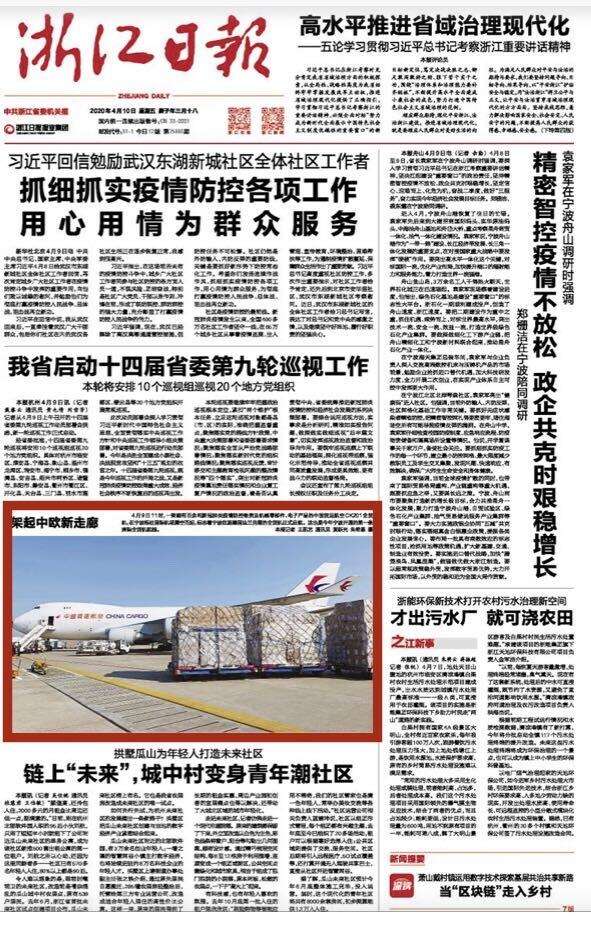 浙江在线-宁波频道4月10日讯(浙江在线记者 王凯艺 通讯员 黄跃光 朱希恩 摄)4月9日11时,一架载有百余吨新冠肺炎疫情防控物资及机械零部件、电子产品的中国货运航空CK201全货机,在宁波栎社国际机场腾空而起,标志着宁波往返德国法兰克福的全货机正式启航。这也是今年宁波开通的第一条洲际全货机航线。
