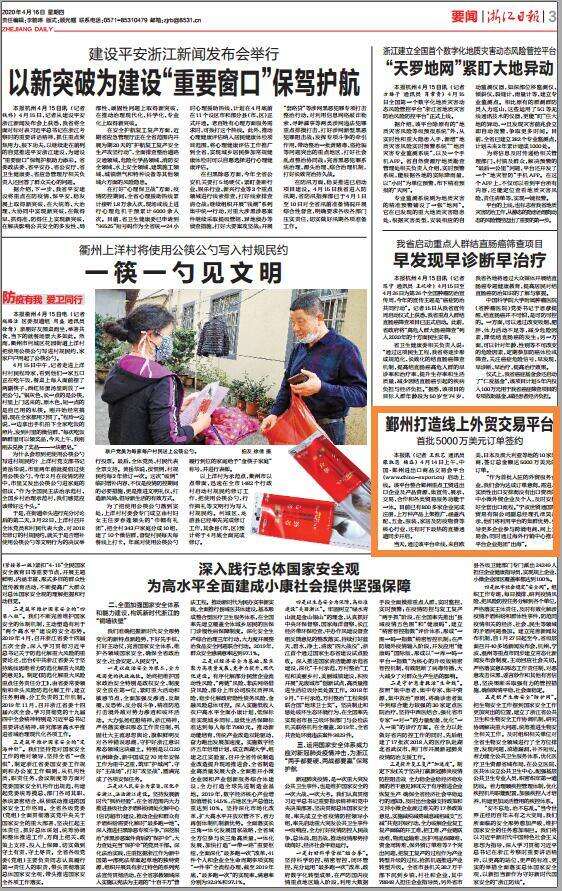 浙江在线-宁波频道4月16日讯(浙江在线记者 王凯艺 通讯员 张淑恩 杨磊)4月14日上午,中国·鄞州进出口商品交易会平台(www.china-export.cn) 启动上线。该平台整合鄞州重点工贸进出口企业及产品资源,集宣传、展示、交易、合作和各类贸易服务功能于一体。目前已有800多家企业完成注册,上万种产品上架推广,涵盖汽配、五金、服装、家居及防疫物资等核心行业,还有时下最热的直播通道同步开启。