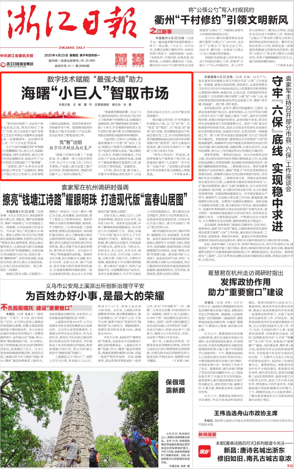 旷世智源和君禾泵业的经历,正是海曙制造业“小巨人”以数字经济赋能,在疫情中锤炼增效的一个缩影。