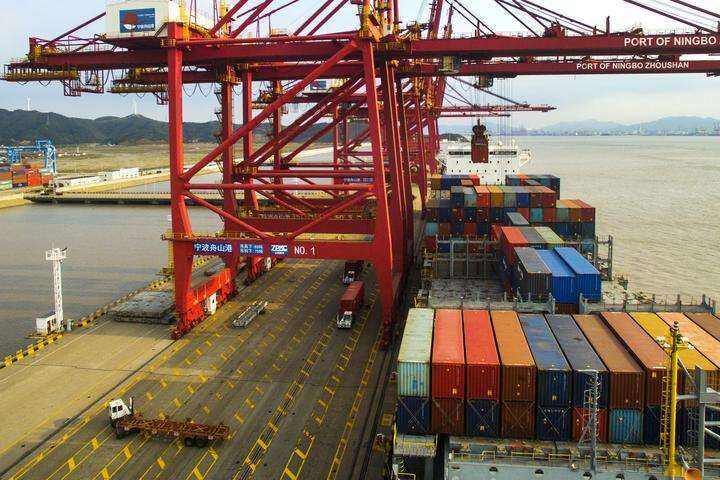 针对4月以来外贸市场需求遇冷,宁波舟山港又主动加强与大型船公司合作,新增远洋干线,集装箱航线总数增至245条。5月1日当天,载箱量达23964标准箱的“现代阿尔赫西拉斯”轮挂靠梅山港区7号泊位。“港区6号、7号两个20万吨级泊位是国内新建最高等级集装箱泊位,待8至10号泊位全部建成,梅山港区将有望晋级全球第4座‘千万级’单体集装箱码头。”宁波梅山岛国际集装箱码头有限公司总经理任小波告诉记者,此次装卸全部采用远控自动化操作,是初具规模的智慧码头系统首次投用。