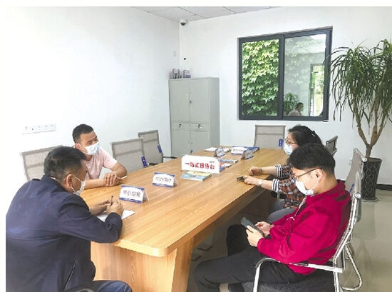 在洪塘街道社会矛盾纠纷调处化解中心内,调解员正在为老百姓调解。