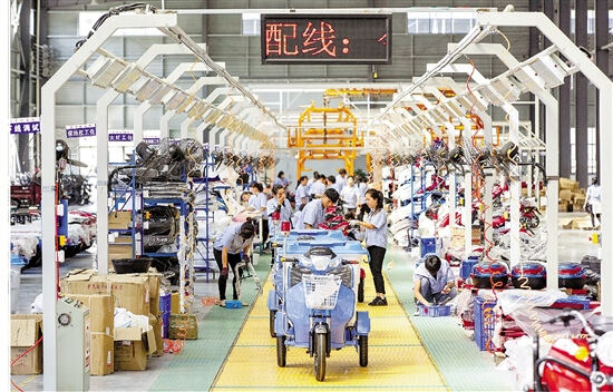 黔西南州晴隆县宁波产业园摩托车制造车间。 记者 贺元凯 摄
