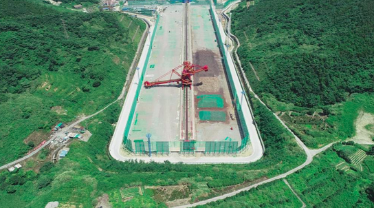 本次验收部位中,3.5万吨装船泊位由已建中宅一期工程装船码头向东延伸193m,码头宽度23m,并与已建一期装船码头共用结构段及回旋水域,靠泊船型按5万吨散货船设计;上宅堆场用地面积约15.73万m2,场地内沿南北布置一条斗轮堆取料机作业线,场地面积约4.67 m2,堆场容量约65万吨;码头与堆场通过廊道与转运站,完成散货装船流程。本次验收完成的流程线配置一台5000T/h移动式装船机,将大大弥补中宅一期出场能力不足的问题。