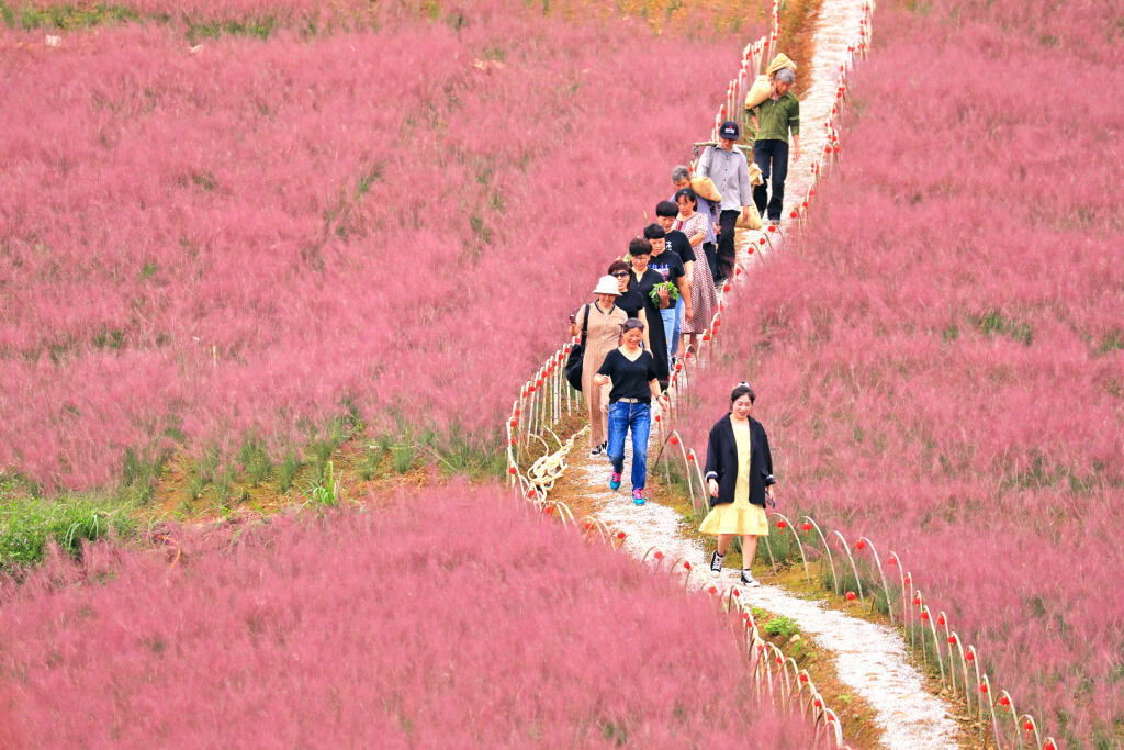 浙江在线-宁波频道10月5日讯(浙江在线记者 王波 通讯员 李超)近日,位于宁波鄞州塘溪镇东山老村山顶的30多亩粉黛乱子草花海初露“美颜”,一跃成为新晋网红打卡地,国庆黄金周首日客流就突破1万人。
