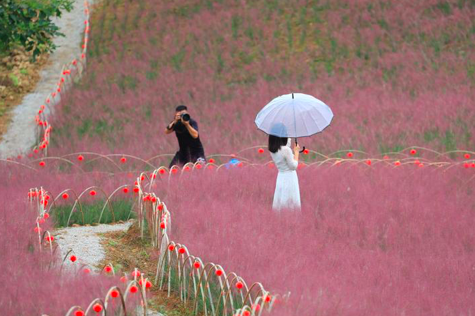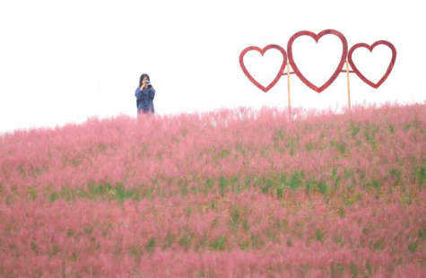 一大片粉红色的花穗随风摇曳,如云如雾,给秋初带来了几分少女般的浪漫,连绵成片,便仿佛让人置身于粉红色的海洋。