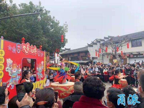 溪口、达人谷、象山影视城、宁波海洋世界等景区也是炙手可热。一大早,溪口武岭门内,快闪的、换装的、表演曲艺的一拨又一拨,带领着游客玩起了“穿越”。象山影视城入园时间一到,福禄寿禧“四天官”洒起“红包雨”,带着大家看“狮王争霸”,玩“沉浸式”表演。宁波海洋世界蓝灵街上、海洋剧场里,看表演、淘美食的人川流不息。江北绿野山居(达人谷)则成了亲子天堂,家长和孩子们“撒欢跳”“撒点萌”“撒开吃”,一片欢声笑语。