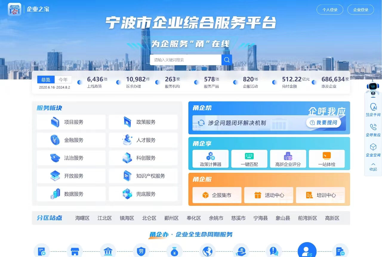 宁波市企业综合服务平台“官宣”上线,贯通全市200余个涉企服务平台,为企业提供更精准的个性化衍生服务,更好地满足企业多元化需求。