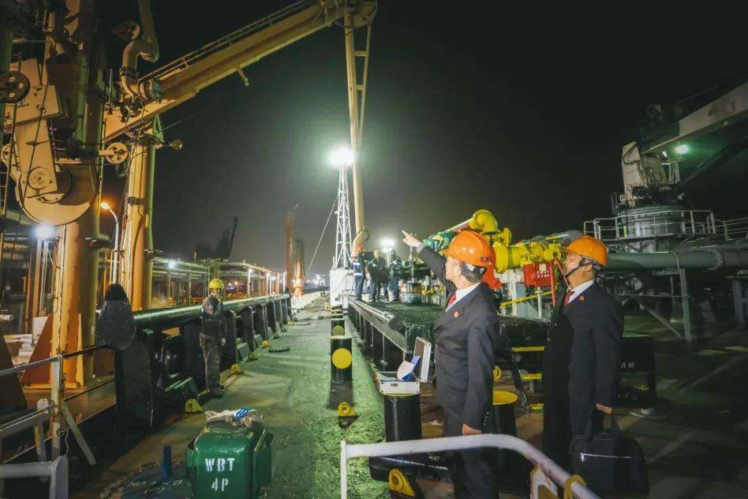 海事法官在K轮上向外籍船员了解卸载作业情况 通讯员供图由于西安某公司未按期清偿债务,河北某公司密切关注K轮动向,当得知该轮将在宁波港停靠作业时,便向宁波海事法院诉前申请扣押该轮,法院依法审查后,于次日实施扣押。