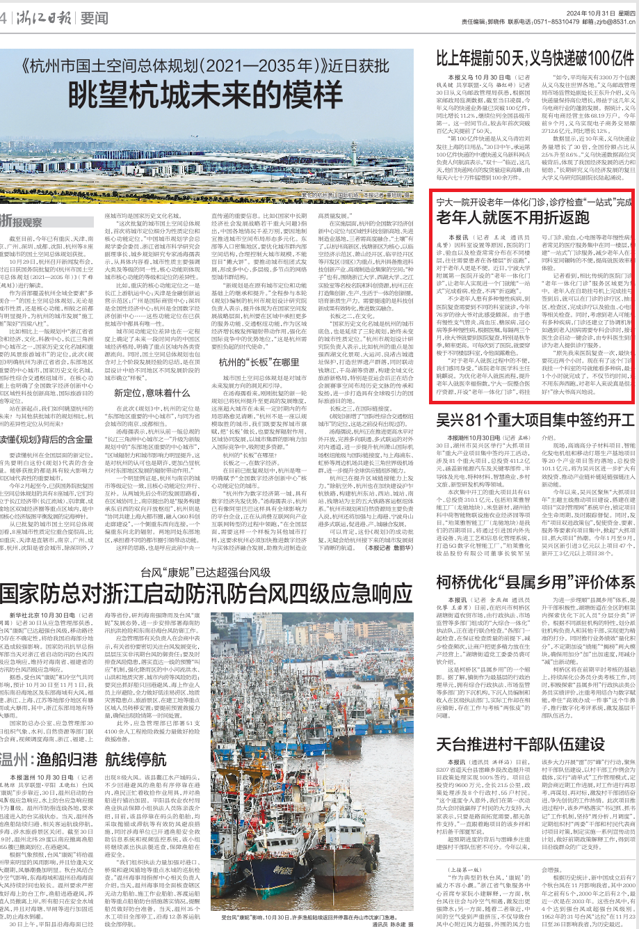 因科室设置等原因,医院的门诊、验血以及检查常常分布在不同楼层,往往需要患者在各楼层“折返跑”,对于老年人更是不便。近日,宁波大学附属第一医院开设的“老年一体化门诊”,让老年人实现进一个门就能“一站式”完成看病、检查,不再“折返跑”。