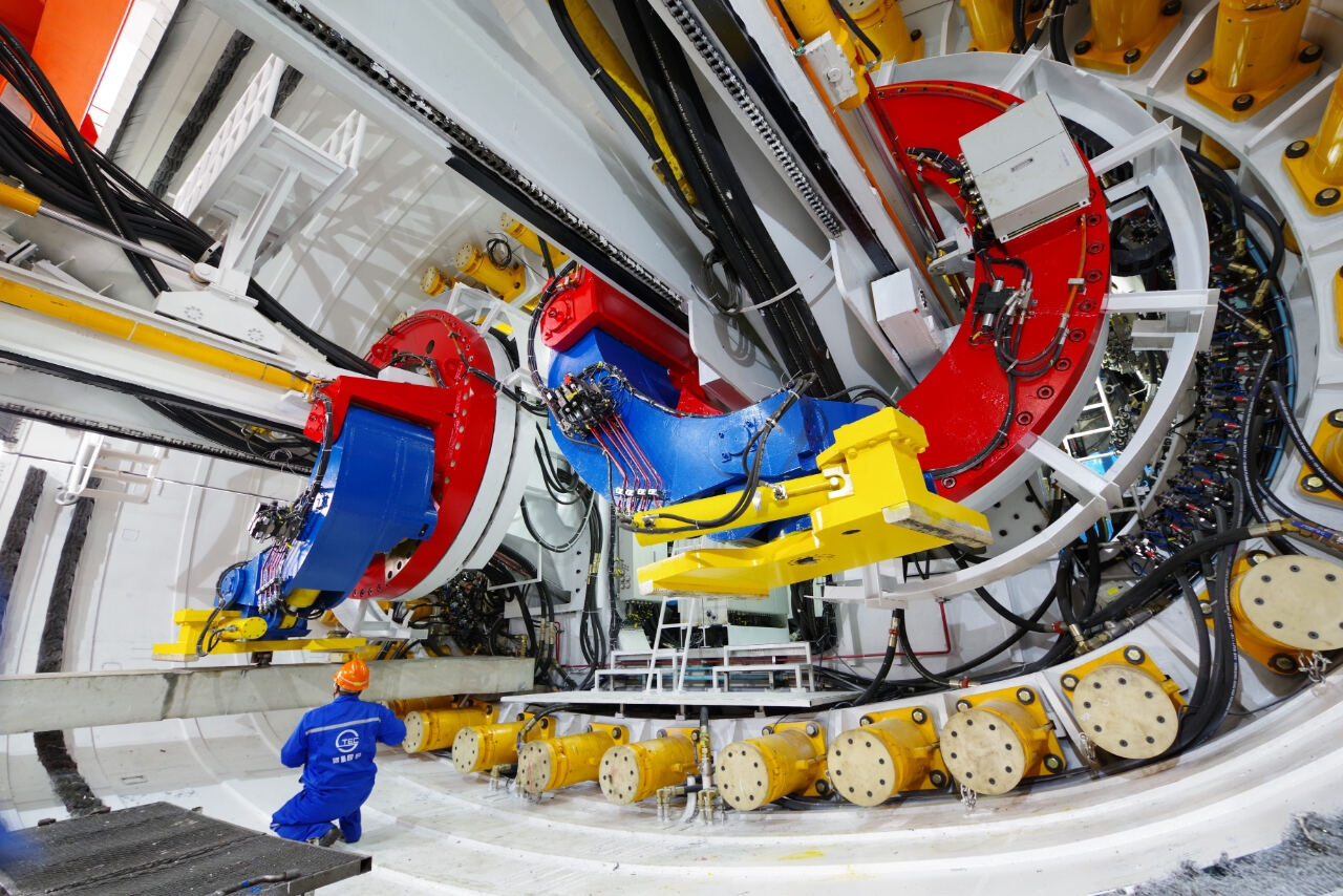 但由于多刀盘间隙较小,容易产生碰撞。此类问题国外较多采用先停机再启动,扭力受损较大。黄毅说,我们运用数字化技术,能够自动调节运行速度,有效保障了作业的安全性。此后“类矩盾构”对管片、刀盘系统作了进一步改进完善,掘进速度由原来每天的2-3米,达到现今每天10米,增加了三倍多。