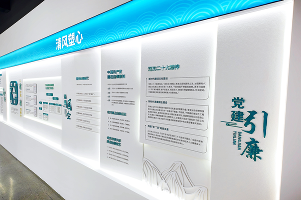 “清风塑心”区域“清风塑心”区域主要展示习近平总书记关于全面从严治党重要思想、习近平总书记关于国企改革发展和党风廉政建设的重要论述。同时展示了宁波通商控股集团清廉国企建设的实施办法等。