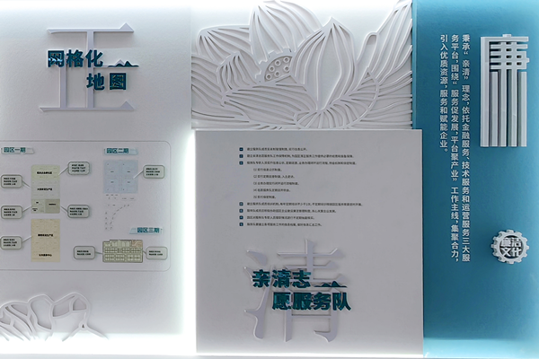 “清正服务”区域“清正服务”区域依托亲清志愿服务队网格化服务,融合联结园企服务三大平台,打造服务企业的三大法宝,为企业发展提供三大锦囊,推动实现“园区事、园区办”。数字化平台为企业提供数字化转型解决方案;亲清二维码畅通园区、企业、群众沟通交流渠道;企服通平台为企业提供政策、金融、人才、质量等专业化服务需求资源对接。