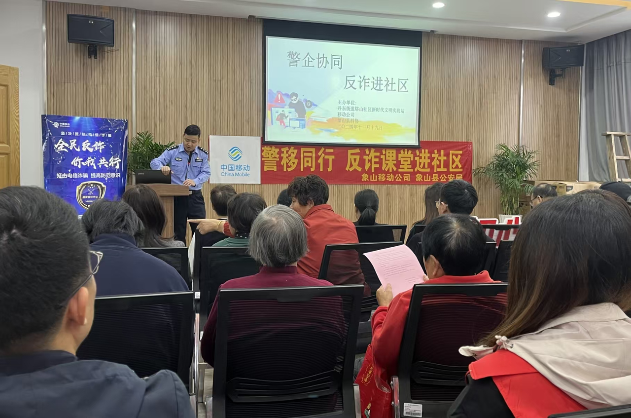 民警在小课堂上讲解典型电信诈骗案例 通讯员供图此外,宁波移动还进一步加强警企联动,共同打造反诈共治圈。民警同志通过讲解“新型资金转移手段”“假冒有权机关电信诈骗”“假冒银行工作人员实施电信诈骗”等典型案例,引导老人们做到“不听、不信、不转账、多核实”,对于陌生人及陌生号码的来电,要提高警惕,对于打着亲属朋友名号要求借钱的电话,一定要及时和亲属、朋友本人核实,千万不可贸然汇款。