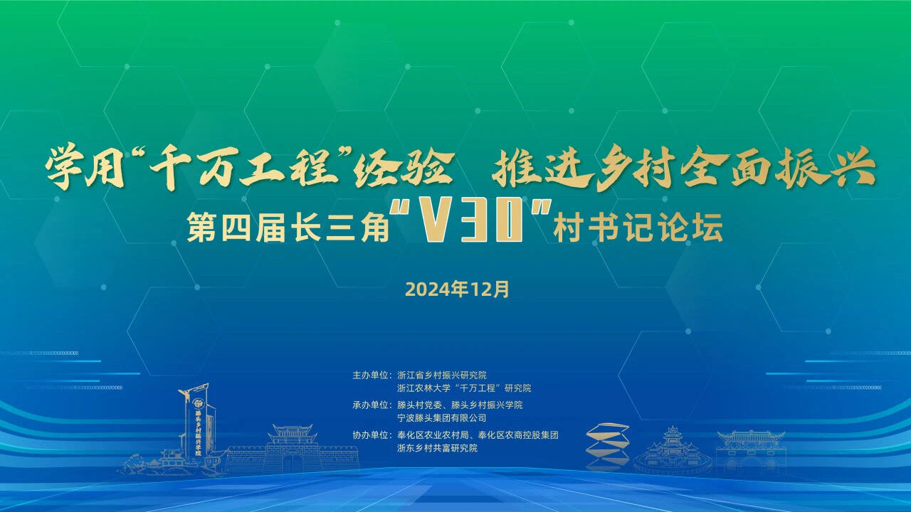 12月26日至28日,浙江省乡村振兴研究院与浙江农林大学“千万工程”研究院联合主办的“学用‘千万工程’经验 推进乡村全面振兴——第四届长三角‘V30’村书记论坛”将在宁波市奉化区滕头乡村振兴学院举行。