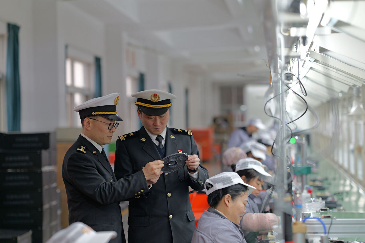 宁波海关关员实地走访家电出口企业。唐利军摄传统优势产品出口保持增长。1-2月,宁波市出口机电产品921.7亿元,增长13.6%,占全市出口总值的57.7%。其中家用电器、通用机械设备、汽车零配件分别出口117.6亿元、66.4亿元、54.3亿元,分别增长16.6%、12.8%、9.3%;集装箱出口20.3亿元,增长141.6%;电动汽车出口16.5亿元,增长233.3%。同期,出口劳动密集型产品365.1亿元,增长9.2%,占全市出口总值的22.9%,其中纺织服装、塑料制品、家具及其零件、玩具分别出口173.3亿元、87.9亿元、52.2亿元、23.3亿元,分别增长7.9%、6.7%、17.6%、23.5%。