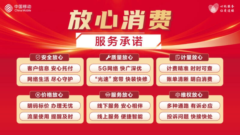 根据承诺,宁波移动将持续优化“来电来信免打扰”防骚扰服务,加强通信侧反诈治理,强化技防手段提升,推动反诈宣传进社区,尽心守护用户安宁的网络生活;加快推进5G网络全面覆盖,提供高速稳定、快装快修的宽带上网体验;做好明码标价、套餐使用提醒,保障客户安心使用;线下营业厅提供“面对面”服务,做到规范安心,线上通道提供“7*24小时”服务,做到高效便捷;多渠道受理客户维权需求,多层级投诉处理的响应升级机制,确保客户问题快速响应,处理结果客户满意。