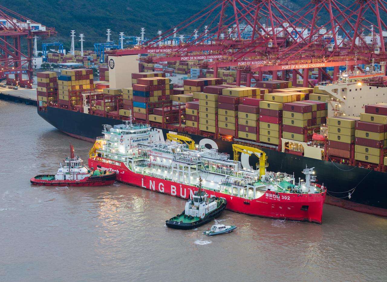 宁波舟山港由此成为全球少数具备国际船舶LNG加注服务能力的枢纽港。