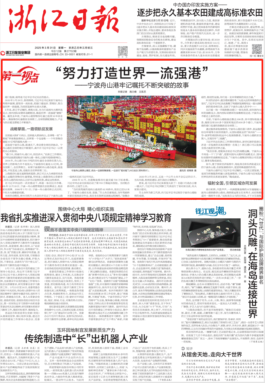 去年10月,《宁波舟山港总体规划(2035年)》获批,宁波舟山港起航下一个十年。浙江也将在世界一流强港建设中,持续提高对外开放水平,让宁波舟山港在服务国内国际双循环、保障物流链供应链高效稳定畅通中发挥基础性、枢纽性设施作用,不断提升资源配置力、全球辐射力、制度创新力、国际竞争力。
