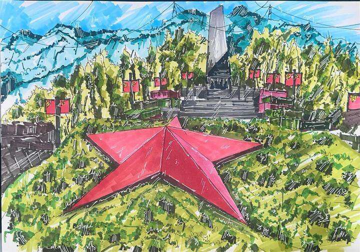 浙江在线-宁波频道5月24日讯(浙江在线通讯员 姚敏明 记者 竺佳)“我以五角星为画面的中心进行创作,远山冷色调和画面中心暖调的五角星形成强烈的色彩对比,让画面更具有视觉冲击力……”说话的是省交通集团所属浙江工商职业技术学院的周璇璇同学,日前,她和环艺2322班的同学们来到宁波樟村四明山革命烈士陵园,上了一堂特殊的专业实践教学课:以手绘写生的形式,学习革命历史,致敬革命先烈。